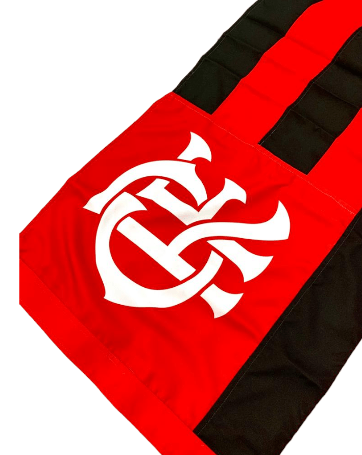 Escudo do Flamengo estampado na bandeira é pintado diretamente no tecido.
