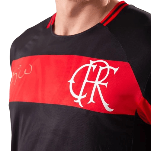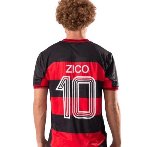 Na parte frontal, a camisa conta com uma assinatura estampada que faz referência ao eterno camisa 10 do Flamengo. As costas levam o número 10, destacando ainda mais o estilo retrô que celebra um dos maiores ídolos da história rubro-negra.