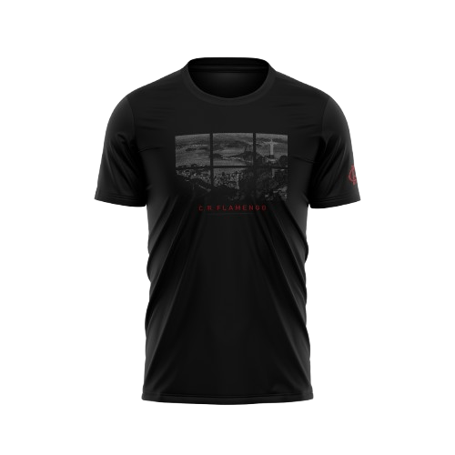 Camiseta com modelagem slim leva estampa de apelo turístico com paisagem do Rio de Janeiro e bordado do CRF na manga. Tecido: Meia Malha