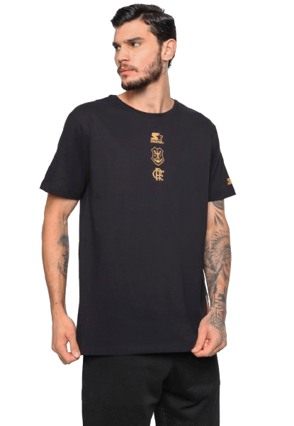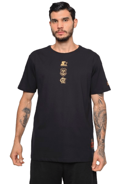 Um clássico urbano com alma rubro-negra. A camisa masculina preta do Flamengo em collab com a Starter é o encontro entre o lifestyle das ruas e a grandeza do clube mais amado do Brasil. O destaque vai para a estampa central no peito, com composição vertical que une o logo da Starter, o escudo do remo e o CRF — três símbolos que carregam história e identidade.