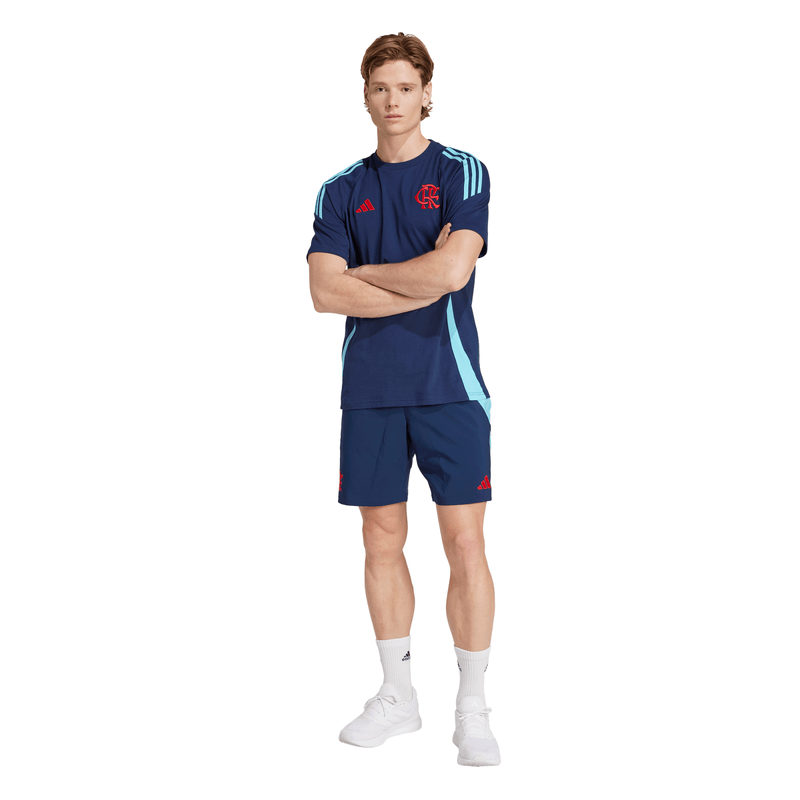Mostre sua paixão pelo futebol com a camiseta adidas que os jogadores do Flamengo usam entre as sessões de treino. Sua estrutura leve de algodão e os detalhes canelados estão lá para manter você confortável quando precisar relaxar. O escudo do clube bordado deixa claro para quem você torce.