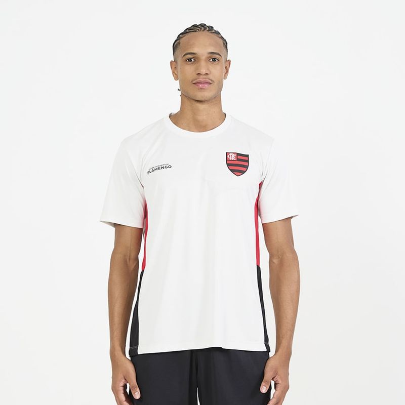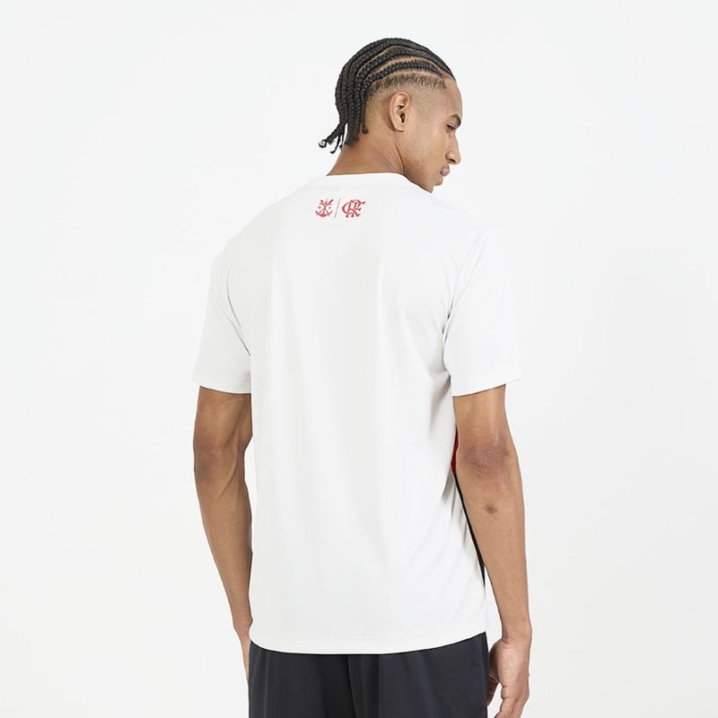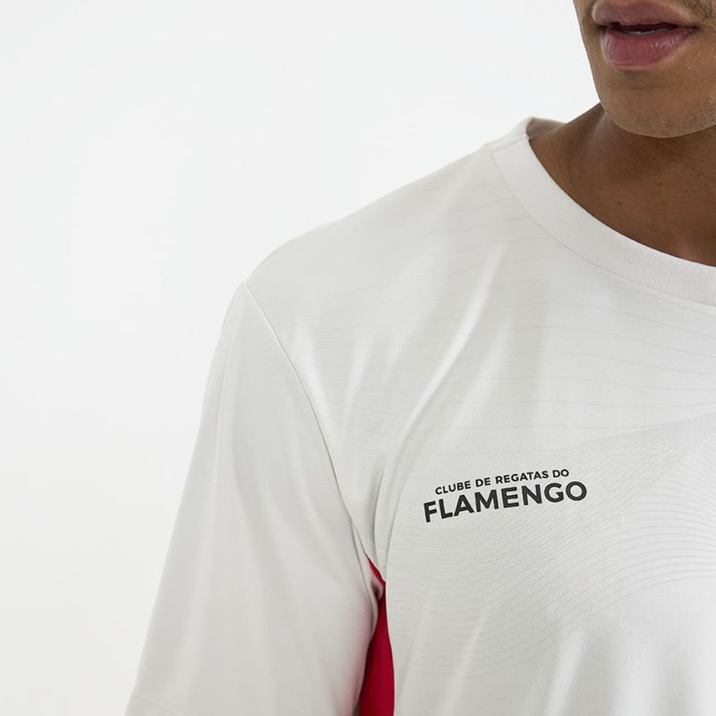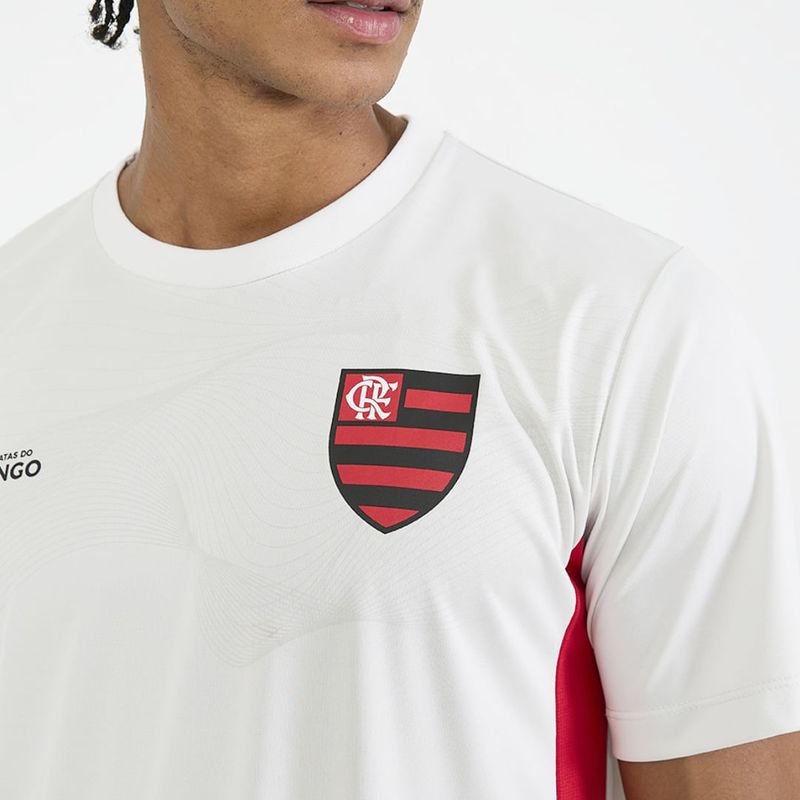 Camiseta confeccionada em Dry Max 100% poliéster, tecido leve, de excelente caimento, que garante conforto, alta respirabilidade e pele sempre seca. Em cor gelo, tendência atual, o modelo traz estampa do escudo de esportes terrestres no peito e uma estampa em toque zero inspirada no movimento das ondas sonoras. Os recortes laterais em rubro-negro adicionam contraste dinâmico e estilo ao visual, destacando a identidade flamenguista.