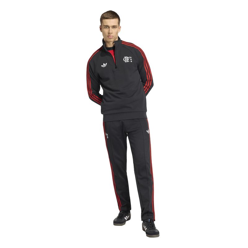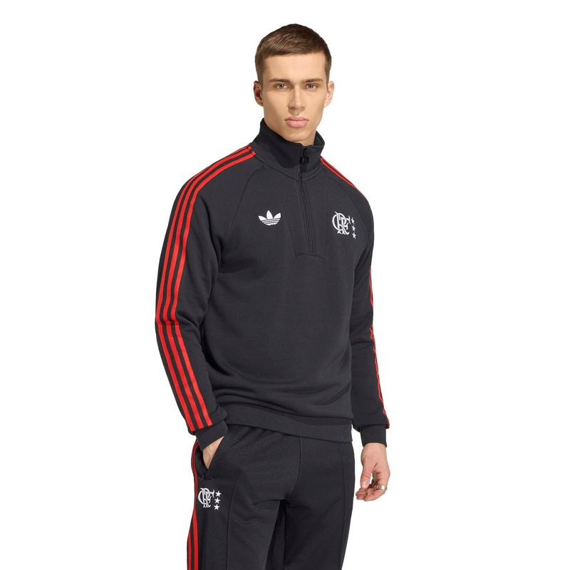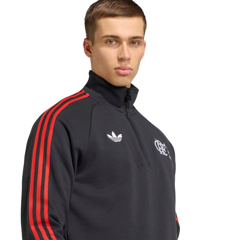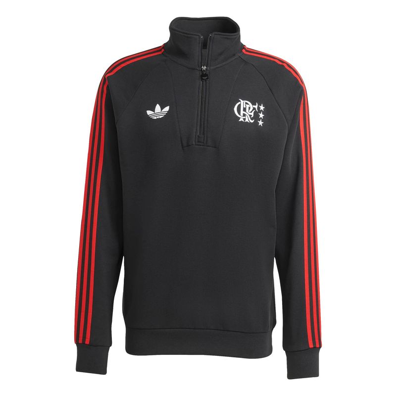 O moletom adidas CR Flamengo Originals com meio fecho de zíper celebra a herança do futebol por meio de um design que combina o estilo vintage do clube com o conforto moderno, proporcionando o melhor dos dois mundos.