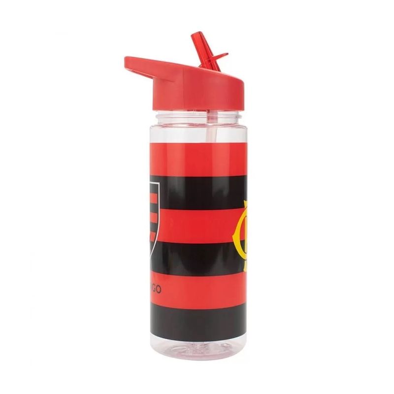 Garrafa Plástico 450ml Com Mochila Tipo saco - Flamengo Garrafa de plástico com canudo e capacidade para 450 ml gravada no escudo do Flamengo e cores do time. Vem dentro uma mochila tipo saco com 41 x 31 cm de dimensão na mesma característica.