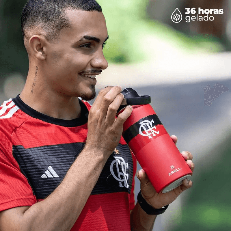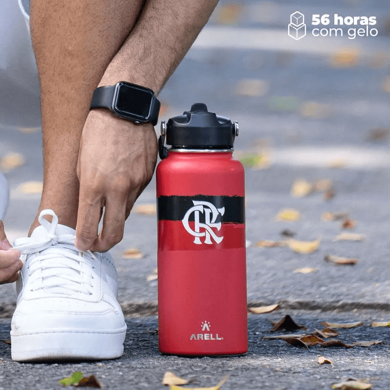 As Garrafas Térmicas Arell são feitas com parede de aço inox 304 usado a tecnologia de isolamento a vácuo. Isso significa que o espaço entre as paredes de aço inoxidável é absolutamente vazio, diminuindo a transferência de calor em torno de toda a garrafa. Isso faz que a temperatura da sua bebida seja menos afetada pela temperatura fora da garrafa. Assim, você pode aproveitar a sua bebida gelada ou quente por muito mais tempo. Descrição do Produto: Marca: Arell Linha: Drinkware Altura com Alça: 281,5mm Altura sem Alça: 246,4mm Fundo: 74,0mm Capacidade: 946ml Pintura Powder Coated Textura Hidrográfica 54 Horas com Gelo 20 Horas Gelado 12 Horas Quente Mantenha hidratado com uma bebida gelada na garrafa de água Arell. Garantia: Contra defeito de fabricação Produto Oficial Licenciado do Flamengo Ao comprar um produto oficial você fortalece seu clube que recebe royalties de cada venda efetuada.