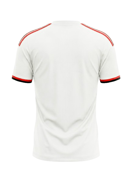 Com base branca imponente e a faixa horizontal em vermelho e preto no peito, o modelo traduz a tradição do clube em uma leitura moderna e marcante. O destaque frontal com o patrocínio valoriza o design e reforça a estética oficial utilizada pelos jogadores.