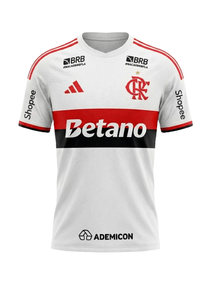 - Escudo do Flamengo no lado esquerdo com estrela superior.