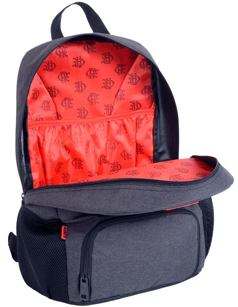 • Design Oficial Flamengo: Com o escudo do Flamengo destacado em vermelho vibrante na frente e forro personalizado com o monograma do clube, essa mochila vai demonstrar sua torcida com elegância.