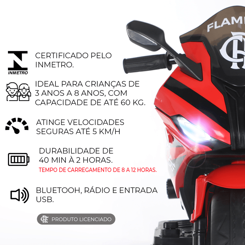 Moto Elétrica Infantil Flamengo – Produto Oficial Licenciado | Edição Limitada