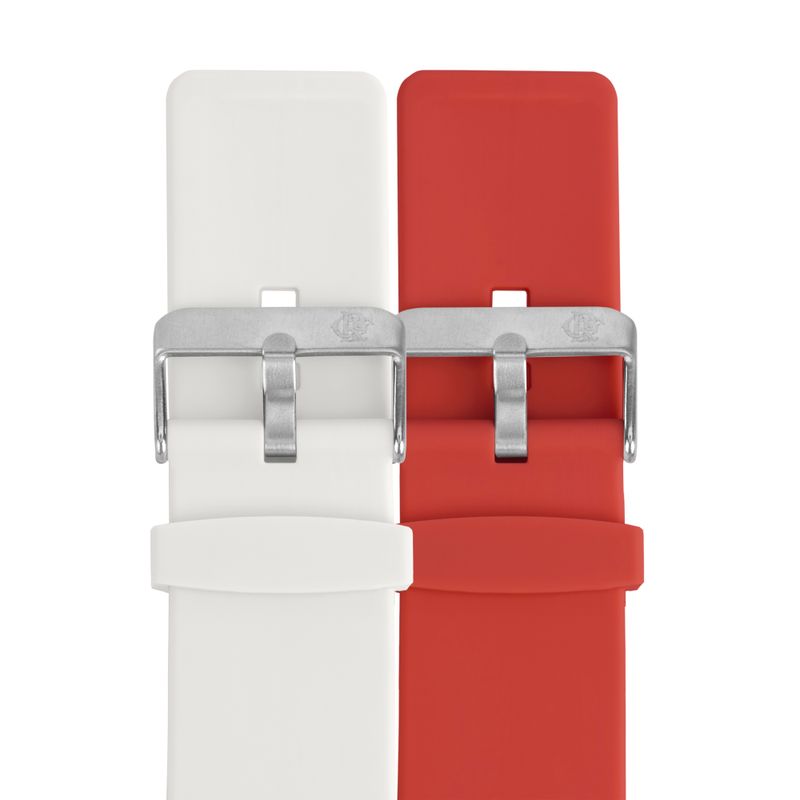 • Pulseira Intercambiável: Acompanham duas pulseiras de silicone nas cores vermelho e branco, para que você personalize o visual de acordo com a sua preferência.
