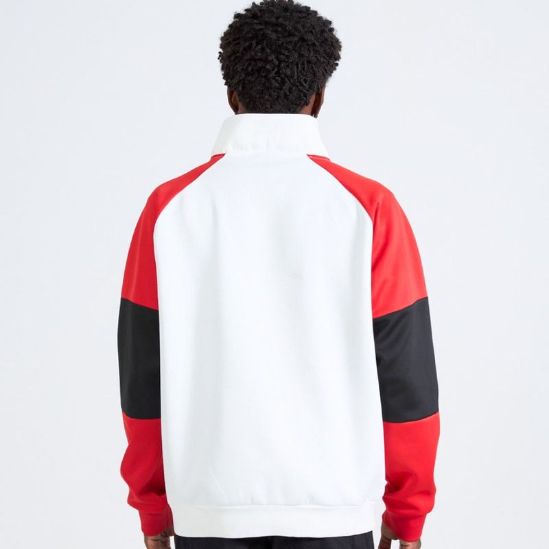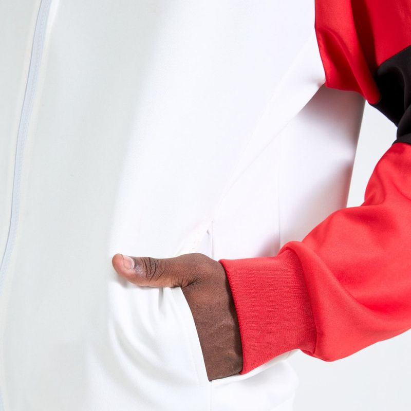Com manga raglan, gola alta, abertura frontal com zíper e bolsos funcionais, a peça se destaca pelos recortes combinados nas cores do clube, inspirados no clássico uniforme de 81. Confeccionado em tecido maleável e flexível, oferece resistência e liberdade de movimento, garantindo conforto durante o uso.