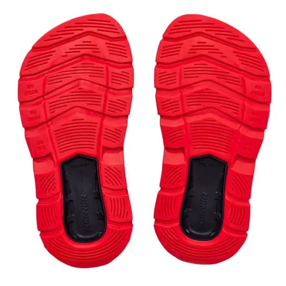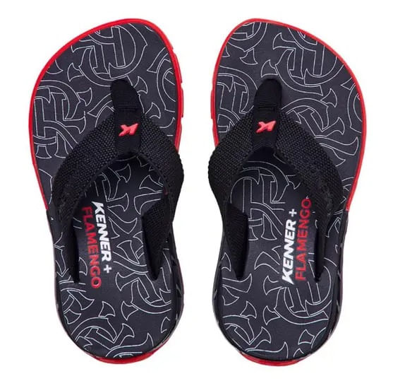 Chinelo Kenner Rakka para a criançada! Com design industrial e totalmente atual possui cabedal com trama elástica e baixo-relevo escrito Flamengo na cor vermelha, palmilha extramacia na cor preta com a sigla do time em branco, solado na cor vermelha e megatratorado de borracha vulcanizada.