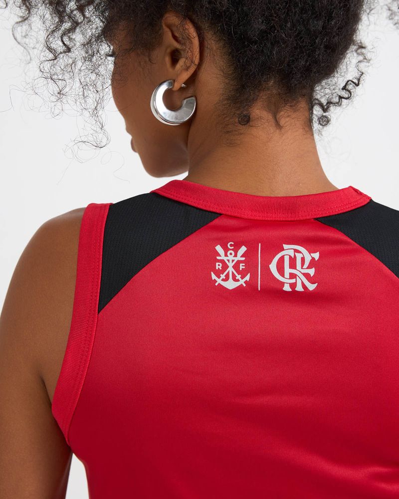 Com decote V, palas contrastantes e o CRF estampado em prata, a peça ainda conta com uma estampa de toque zero inspirada na textura de cestaria com listras irregulares, trazendo um visual único. Confeccionada em tecido muito leve, oferece excelente caimento, alta respirabilidade e absorção do suor, mantendo a pele seca e confortável durante o uso.